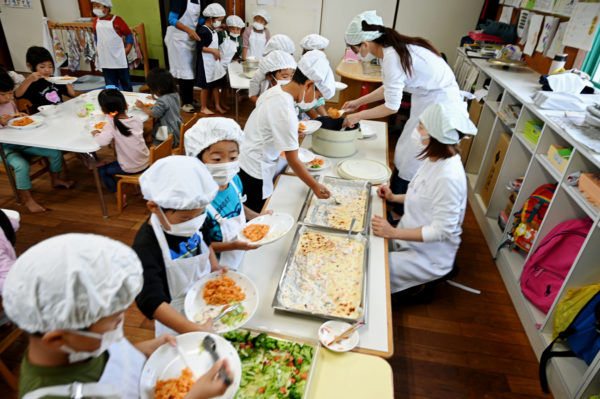 芸術の秋です。年長組は共同制作で熱中しています。あれ~?どこかで見たような……もうすぐ完成です。