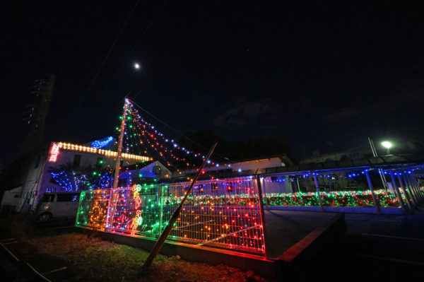 植栽がなくなったところには、設置業者の方の発案でツリーが輝きます。