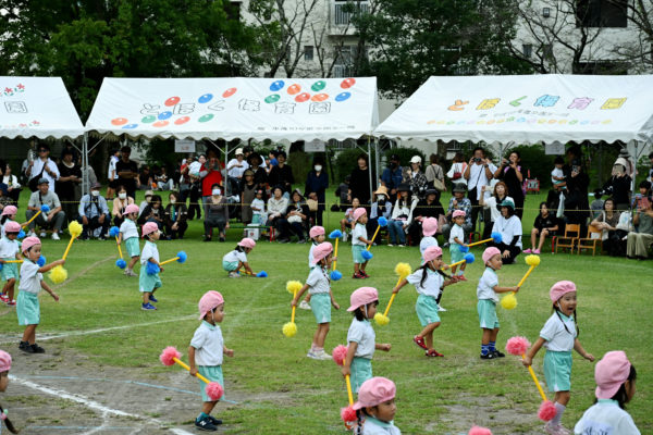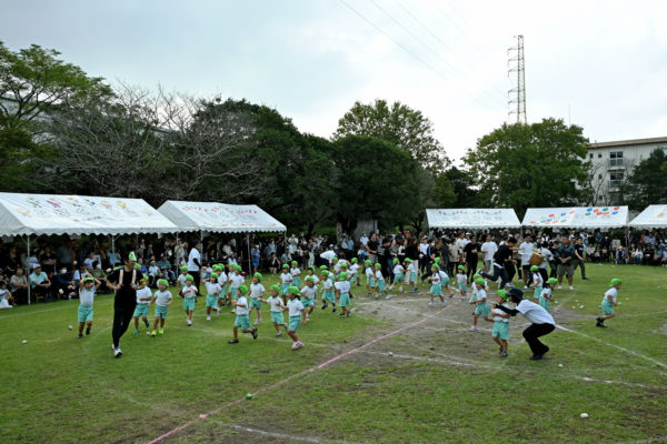 運動会その2 ここからは3・4歳児の出番です。少しだけ競う姿や皆で揃う動きがみられます。観覧される方もそんな姿を収めようと、熱心に撮影されていました。