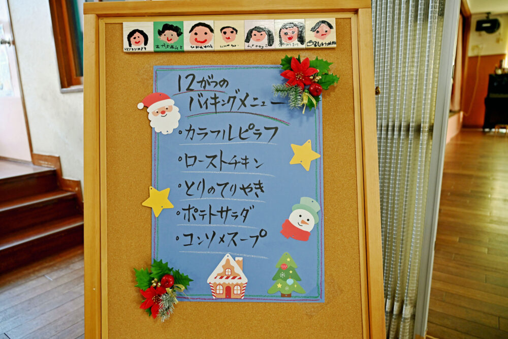 一番楽しみな12月のバイキング。おいしそうなメニューが並んでします。